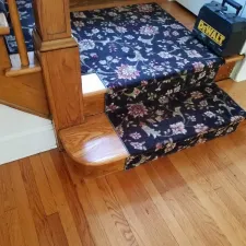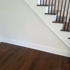 This New Home Owner moved from NYC with her family and wanted an updated look with dark stain color Jacobean and oil (low gloss) matte finish top coating. Also refinished steps, handrail, and balusters to look like new in order to blend perfectly with the newly refinished Red Oak Hardwood floors.